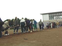 ![]() 毎年恒例の吹奏楽部と青年会の綱引き |