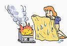 1人で消せるだろうと考えず、隣近所に火事を知らせ、速やかに119番通報を。 初期消火で火事を消せなっかたら、すばやく避難しましょう。 |