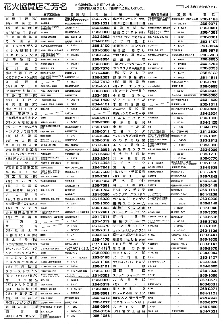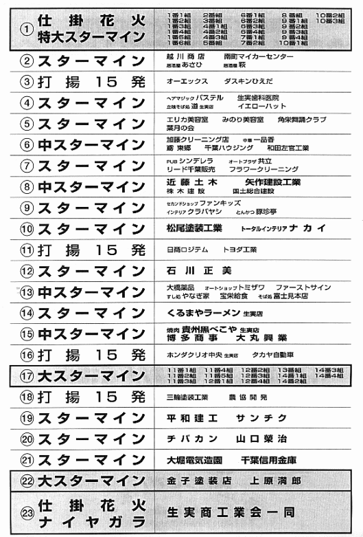 町内花火大会プログラム