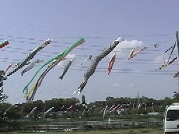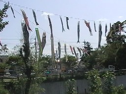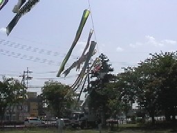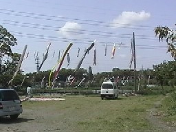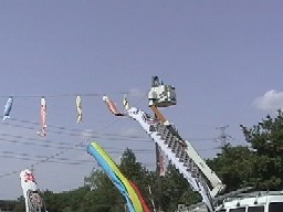 5月4日明日55フェステバルの為青年会の皆様が広場上に又こいのぼりを揚げてくれました