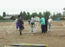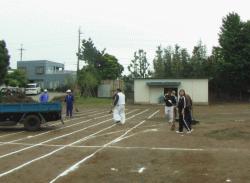 ![]() 前日雨の為グランドに砂入れ |