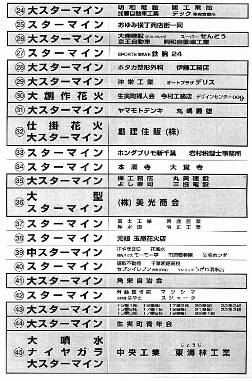 町内花火大会プログラム