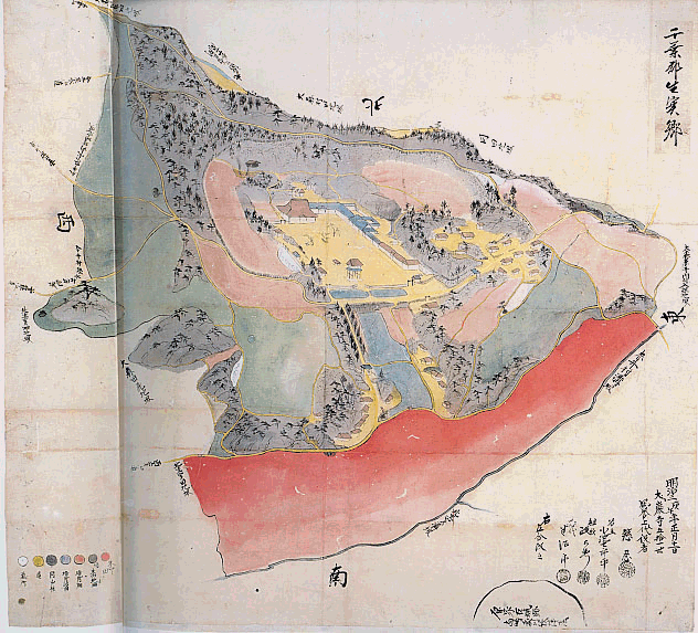 | 生実郷絵図 1870(明治3)年1月11日 (大巌寺町小池博家旧蔵 浜野町宍倉輝吉氏所蔵) |